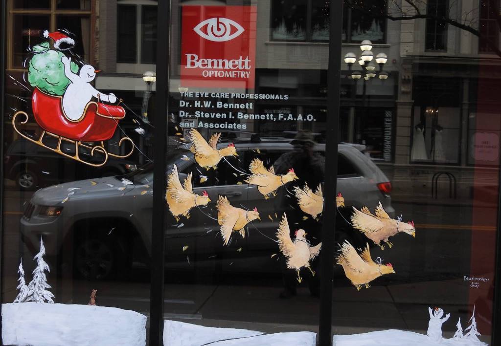 These optometrists add another chicken every year. Fitting them all in a photo can be challenging.