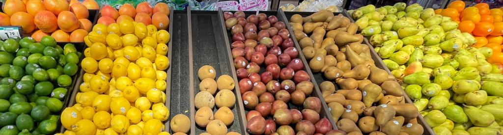 The colors of shopping today at Kroger – pears and peppers.
