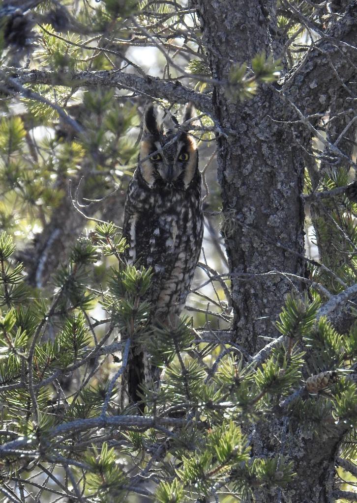 And finally a Long-eared Owl that our friend Joe found perched in a jack pine at Whitefish Point. We see many flying by heading north in the evenings in April and May. However, finding them perched during the day is a real treat.