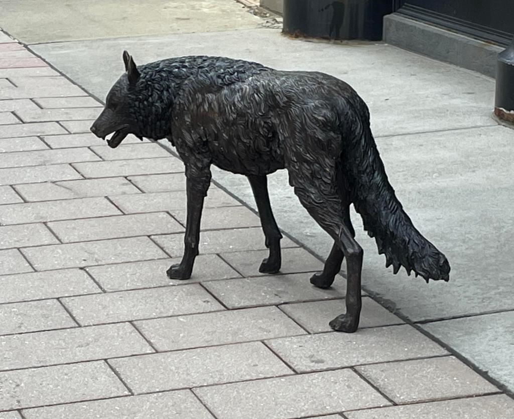 Susan spotted what she thought was a stray dog. Well, it wasn’t. It was a statue of a wolf.