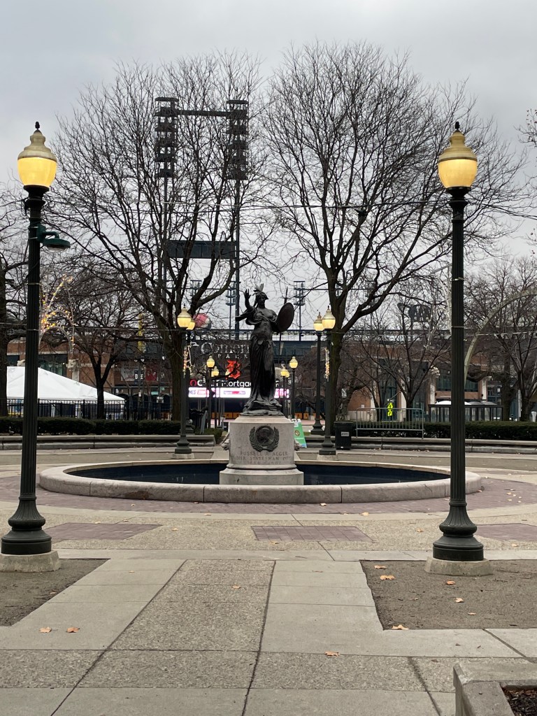 The east side of Grand Circus Park looking towards Comerica, where the Tigers play.