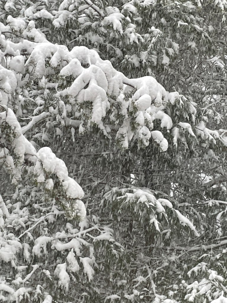 This morning this tree had no snow in it. Now it has just about as much as it can hold.
