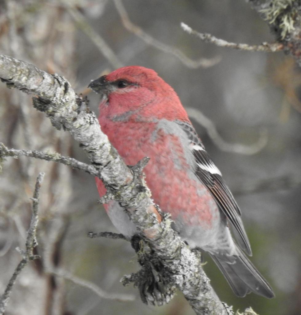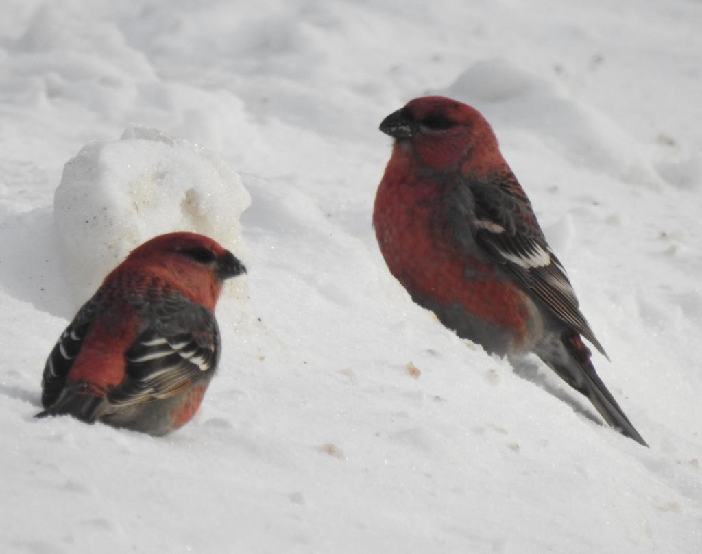 Pine Grosbeaks on Whitefish Point Road.