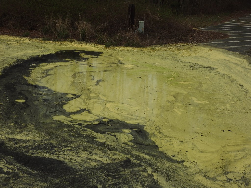 A good-sized puddle in the parking lot showed the tremendous build-up of pine pollen that covered everything, including our clothes when we got home.