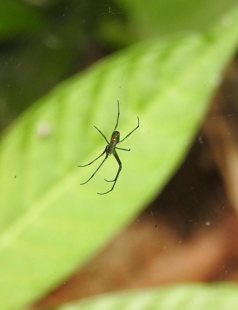 Two spider species in the genus Leucauge. L. argerobapta on the left and L. venusta on the right.