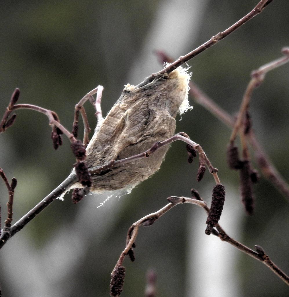 And finally, a cecropia moth cocoon. Susan spotted it as we were walking home from the point this morning.