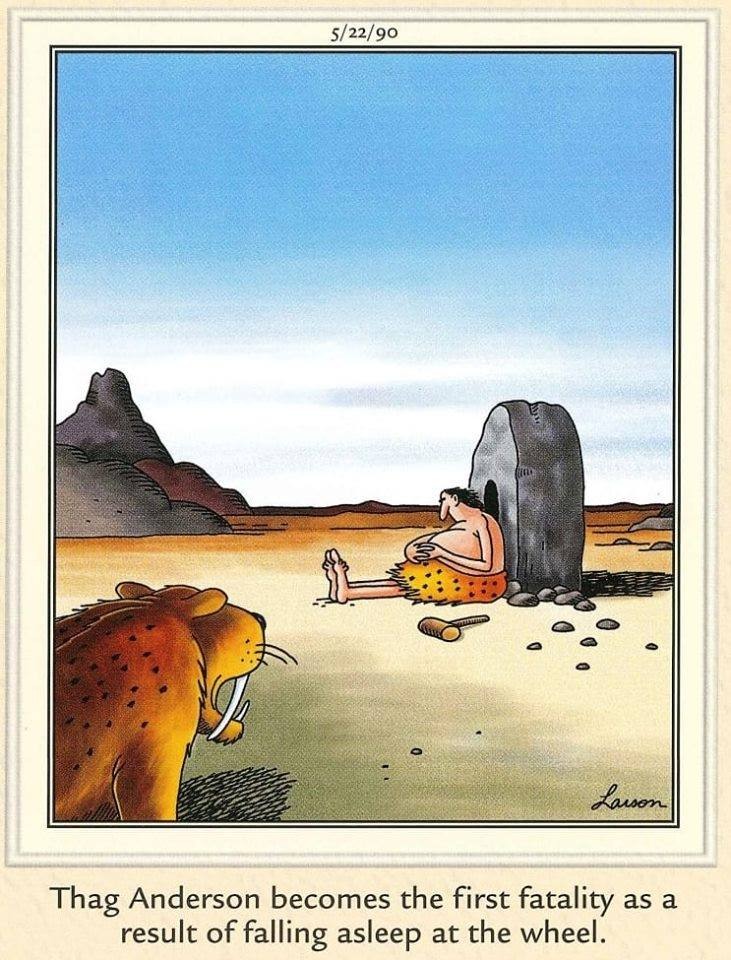 Be alert (see the first cartoon) when at the wheel.