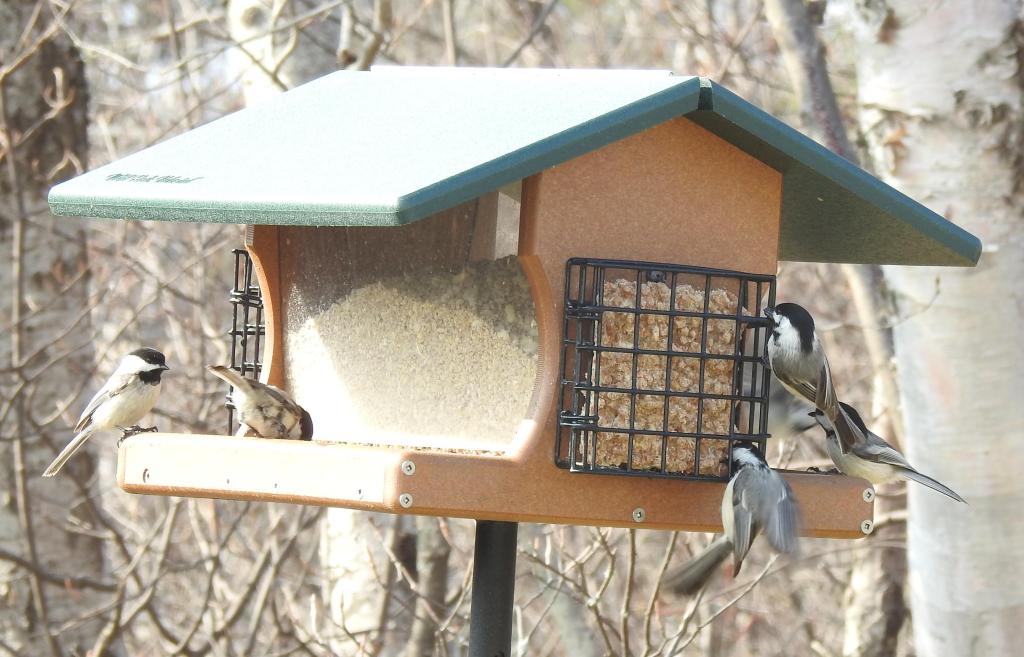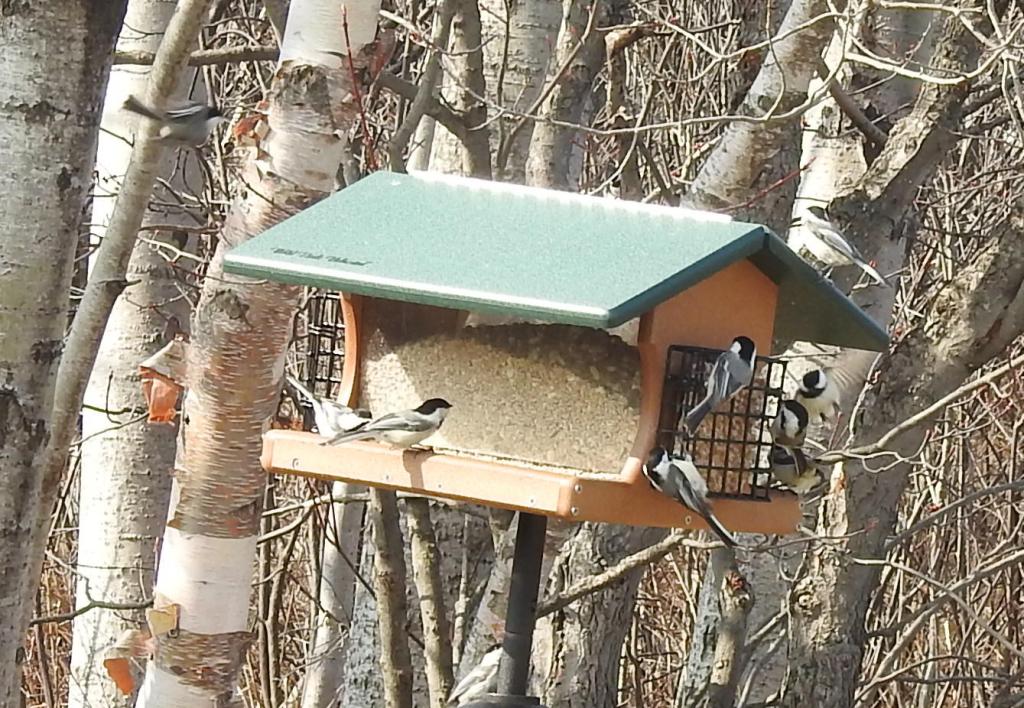 To say that chickadees are moving through is an understatement. These are the feeders at the Whitefish Point Bird Observatory. Between here and the waterfowl counter I tallied some 450 (or more) chickadees, with a few warblers mixed in.