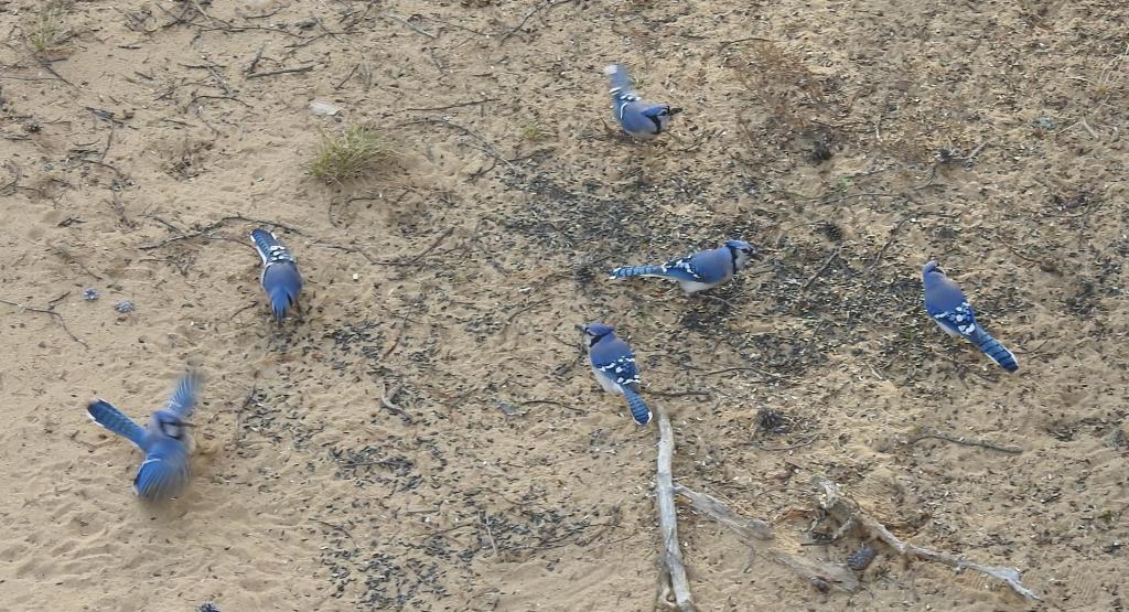 Well, it was bound to happen, but Blue Jays arrived en masse today. While one or two can be rather attractive, when they arrive by the 100s or 1000s they can be serious pests.
