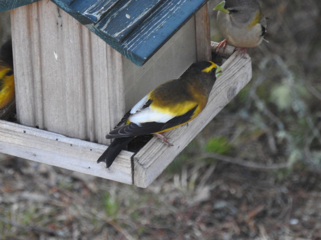 At the same time the jays arrived there was also a tremendous influx of Evening Grosbeaks. Between the jays and grosbeaks our feeders were emptied in one day.