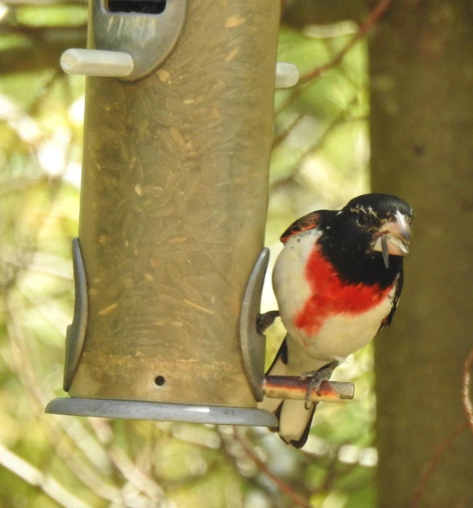 Fortunately, there was still enough seed for this Rose-breasted Grosbeak.