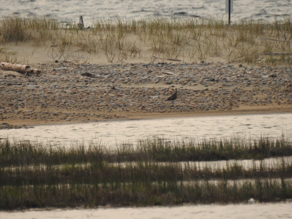We heard that there was a Hudsonian Godwit at the point. So, we drove down there (we usually walk) and managed to get the bird.