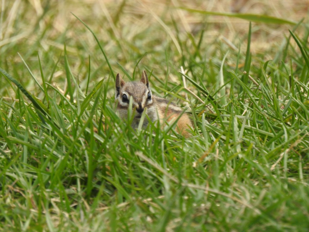 The stripes of the Least chipmunk run along the entire face and body and into the tail.