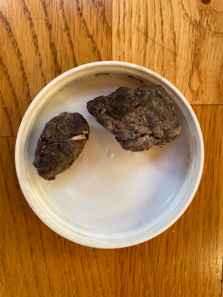 Our friend Joe propped off a gift – two Snowy Owl pellets from this past winter.