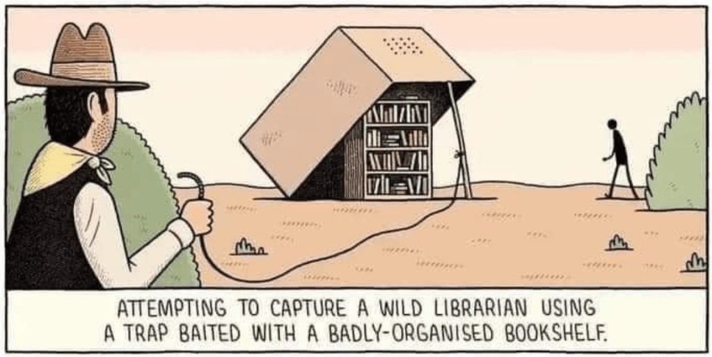 Wild librarians and disorganized bookshelves. What would one do with mine?