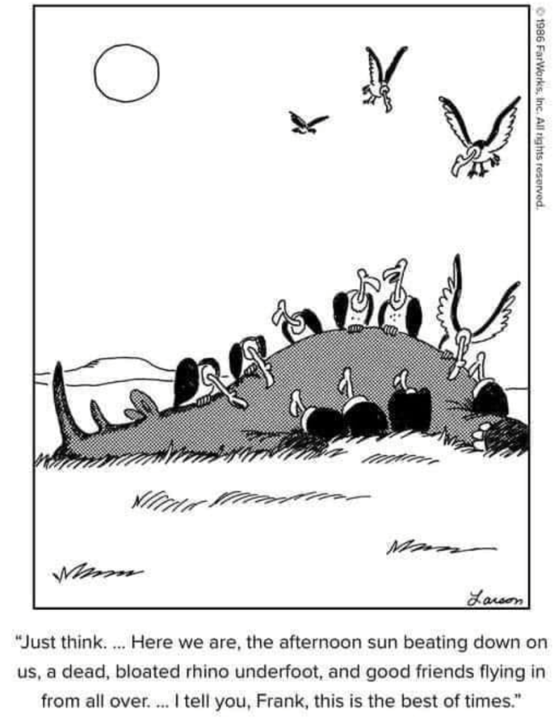 It was the best of times (for the vultures), it was the worst of times (for the rhino) – all a matter of perspective.