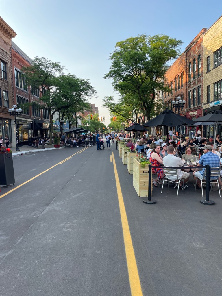 Downtown Ann Arbor, Main Street closed on weekends to car traffic so that the restaurants can expand seating into the street. This is a great idea and the city was full of people.