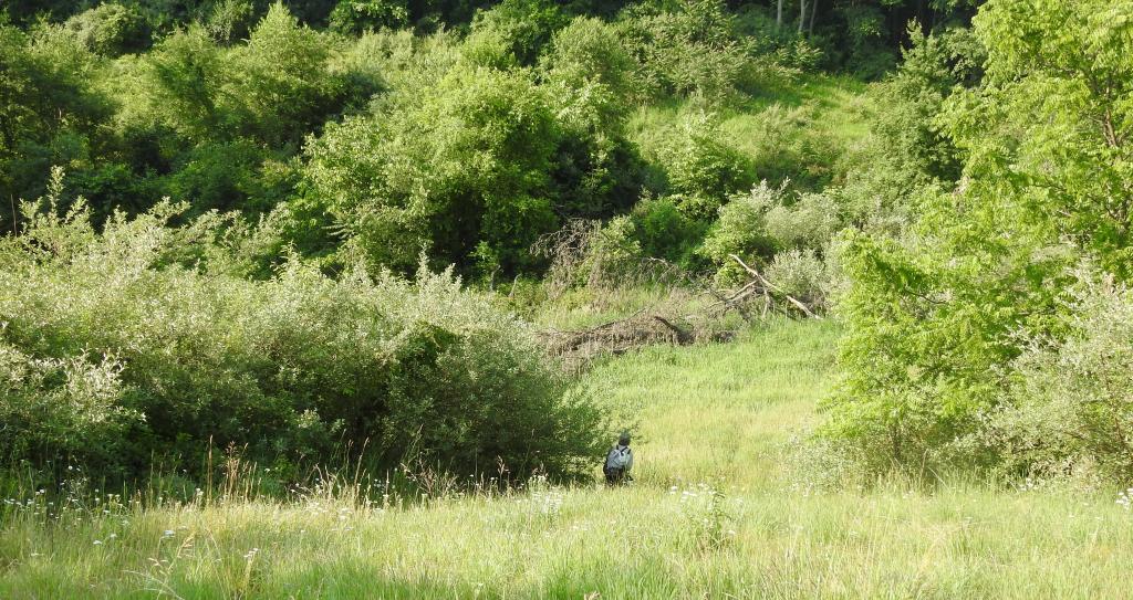 We finally reached the chat habitat, a lot of wet shrubs with openings. While I could hear them, seeing them well enough to get photos wasn’t happening. Susan changed in further than I did.