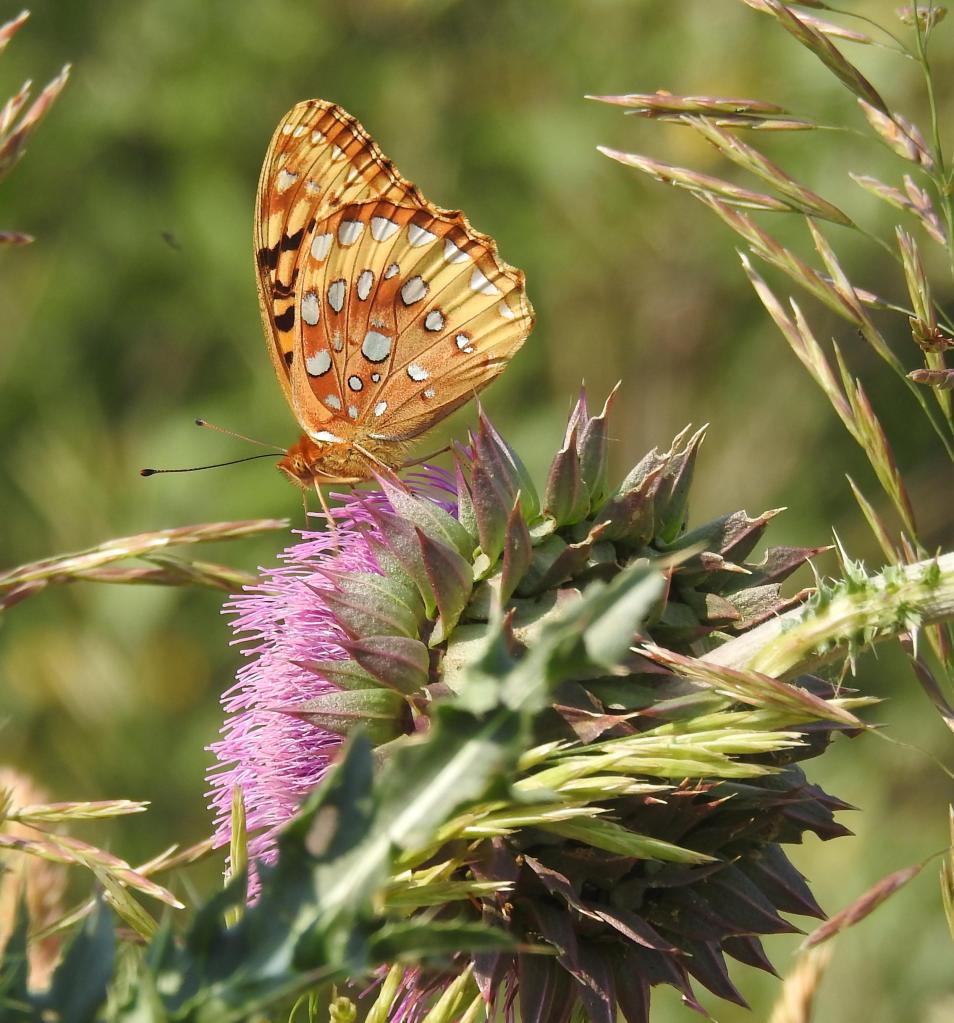 Walking back towards the parking lot there were plenty of insect activity as it was getting hot. The small beetle is a “lightening bug” or “firefly.” The butterfly on the right is a Great spangled fritillary.