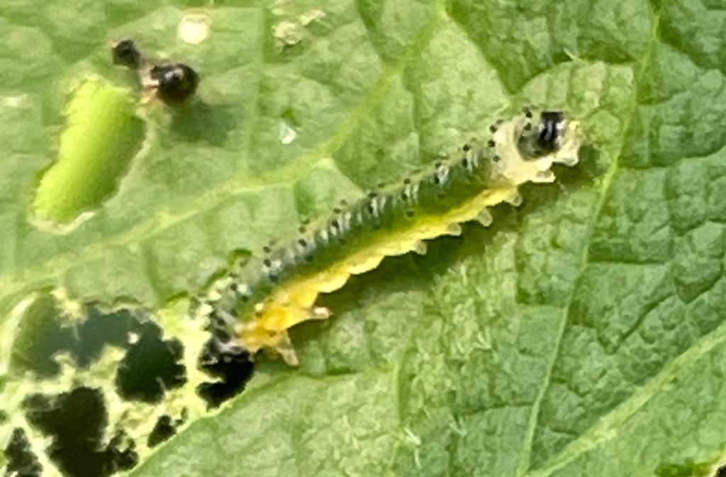 This caterpillar is a Hibiscus sawfly that was happily munching on a hibiscus.