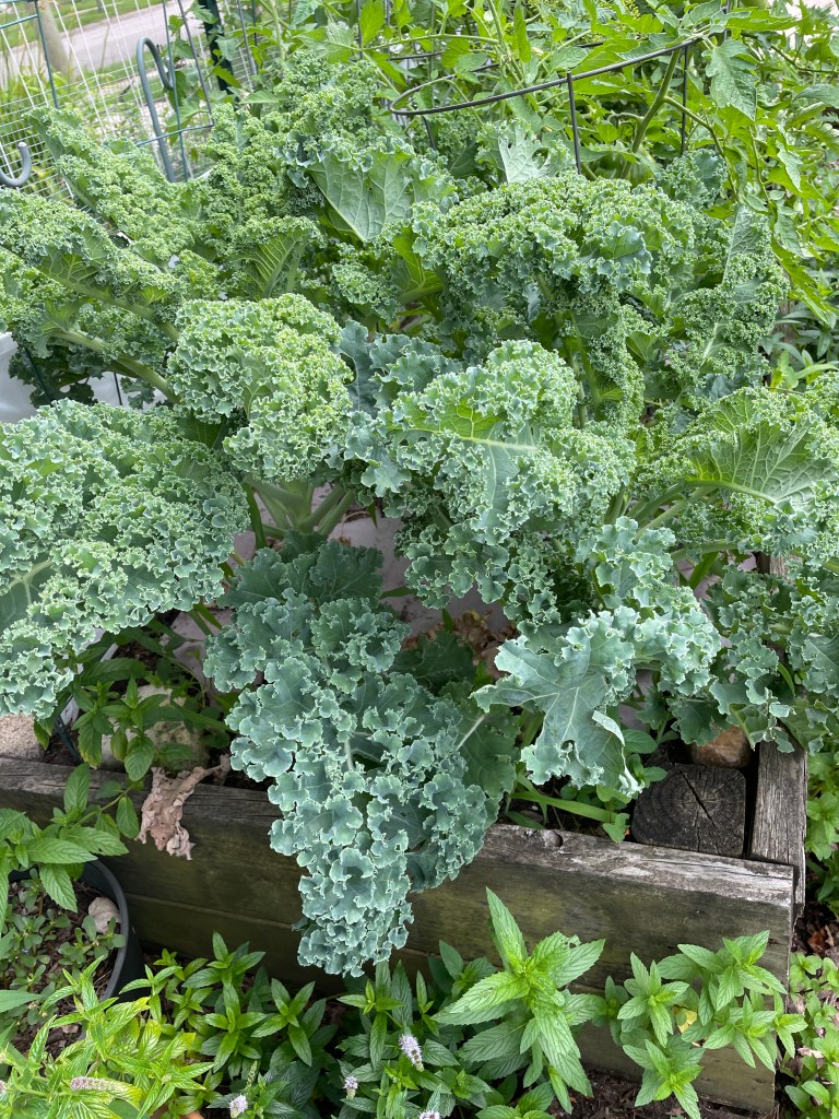 The kale and green beans are growing like weeds. We have been eating fresh kale for weeks. And I am really looking forward to the green beans, one of the favorite parts of the garden during the summer. Hopefully, there will be enough to once again can some.