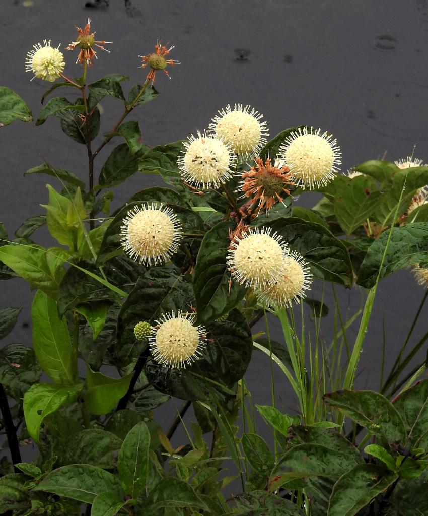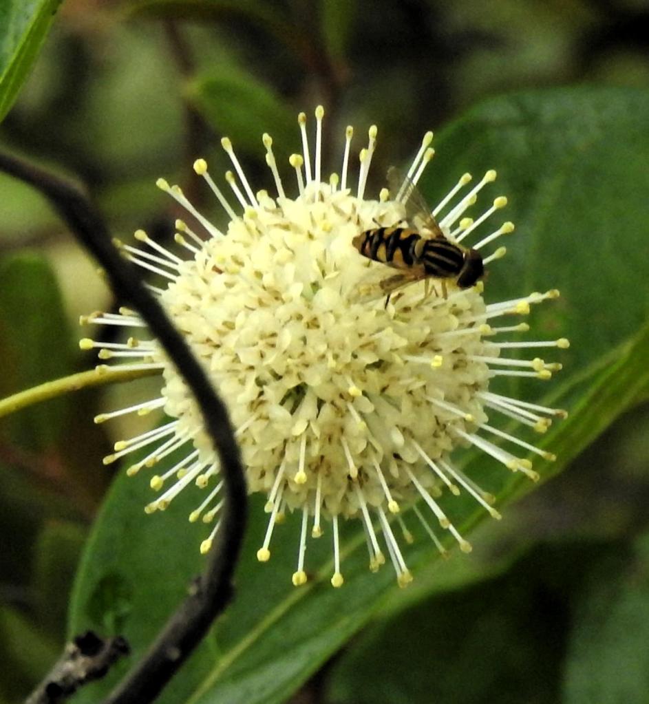 Button bush is a common shrub and can attract many insects. The one here is one of the flower flys.