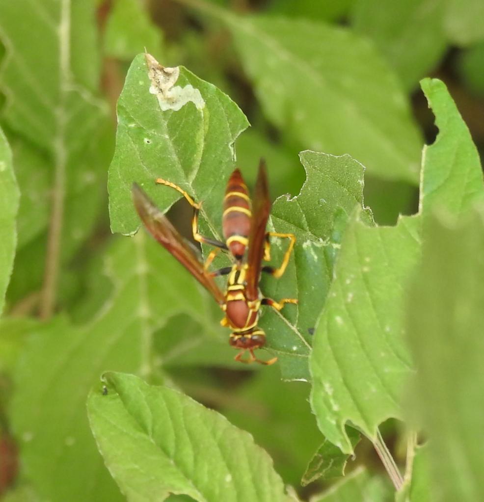 More large wasps. The left wasp is a Thread-waisted sand-wasp. The right one looks like a Polistes wasp, but I am not sure.