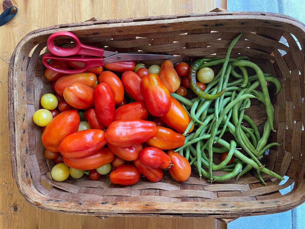 It seems that every time I go outside there are more things to pick. This basket includes a couple of days worth of green beans and even a hot pepper.