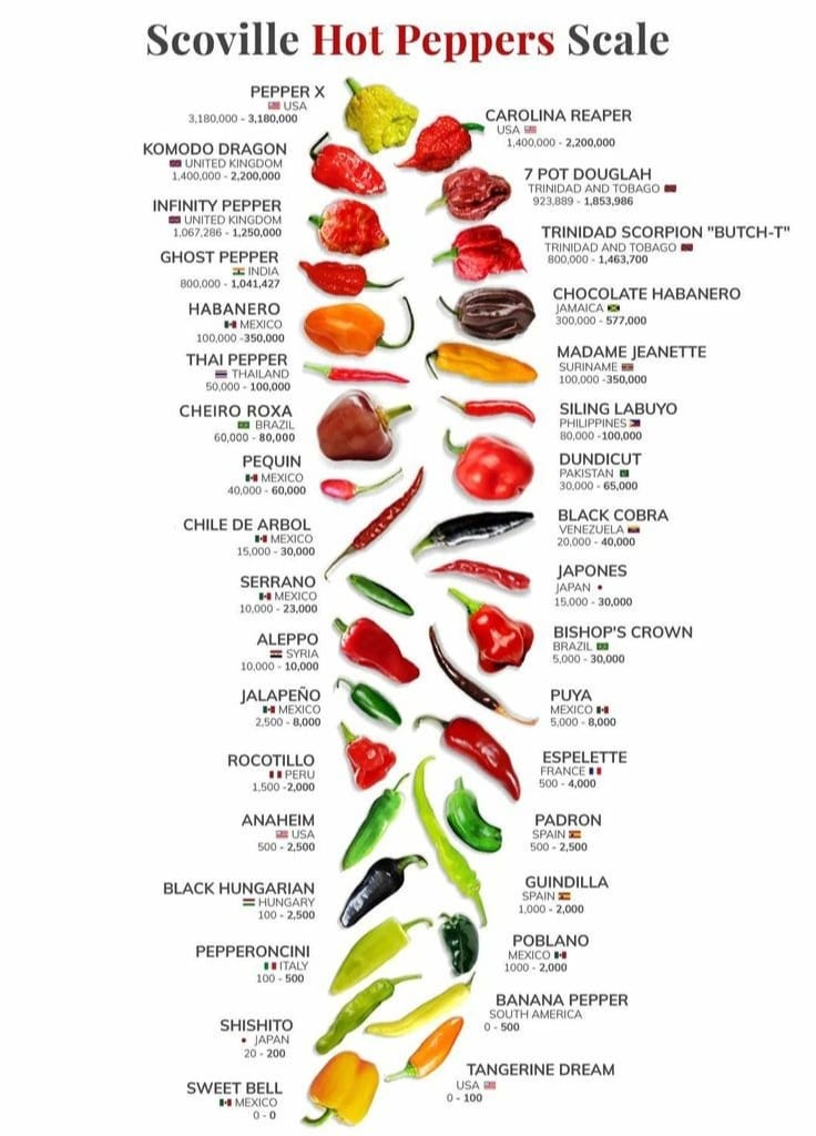 I found this graphic on peppers. I have Caroline reapers, ghost peppers and habaneros that I got from Jacob dried and ready for making chili powders. I also have habaneros, jalapeños, chile de arbol and cayenne fresh from the garden. I will be pickling some and drying others.