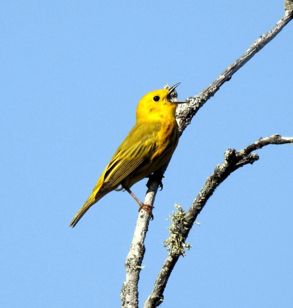 Yellow Warbler singing. Photographed near Newberry, Michigan.