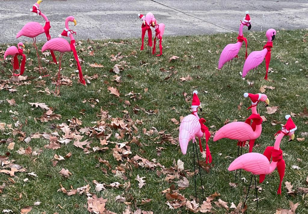 I knew it was going to be a colder morning when the flamingoes down the street were all wearing scarves.