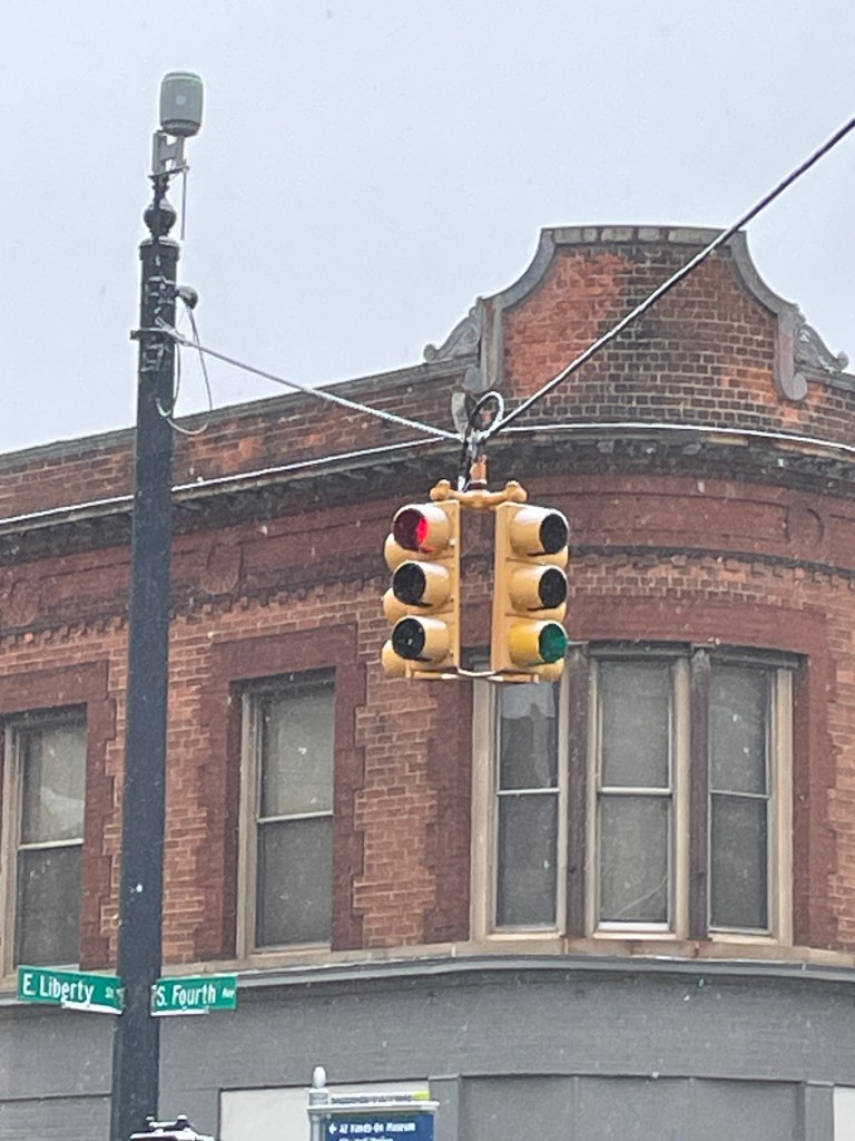 At the end of breakfast a Cooper’s Hawk swooped by and landed on the traffic light where it appeared to be waiting for sparrows. There’s usually a large flock that spends the night in the shrubs by the post office.