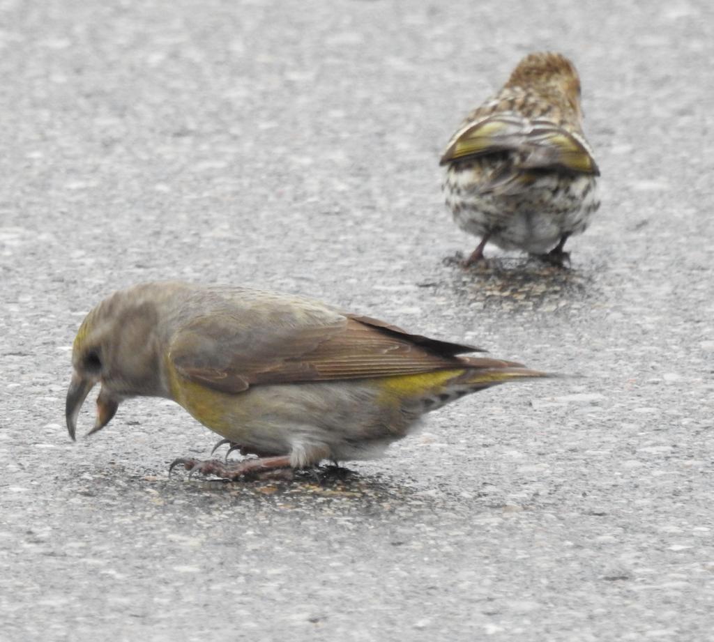 A small group of non-resident Red Crossbills. They have much larger bills.