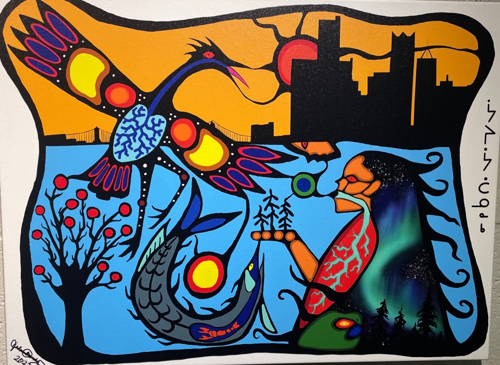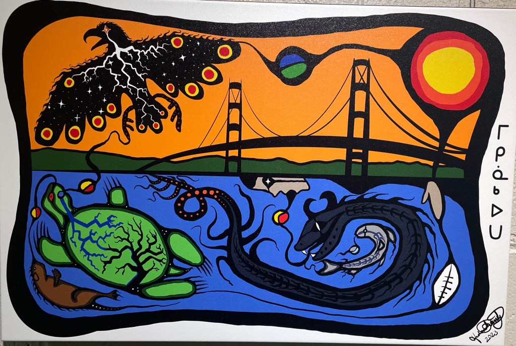 It has been a delightful visit to Whitefish Point. Nice walks. Nice meals, we had nachos with black beans and guacamole last night. But now I am thinking about some art that we saw at the Matthaei Botanical Gardens last Sunday. It was native American and reminded me of art that we saw at a gallery north of Toronto last fall.