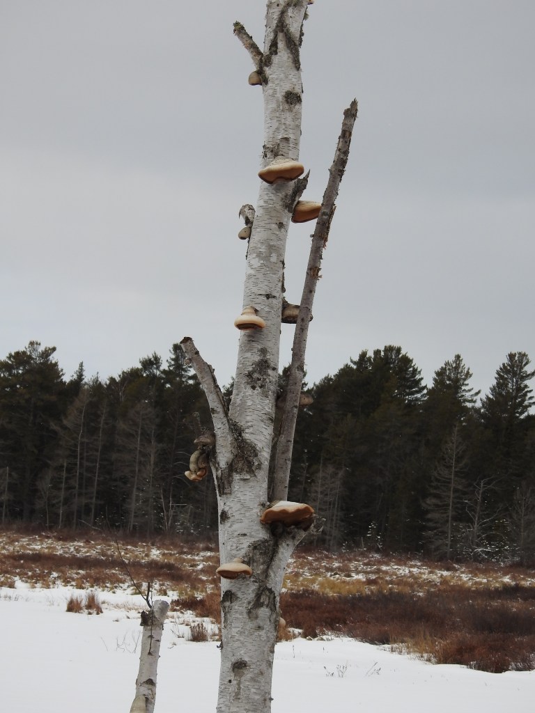 Finding the birch polypore, a fungus is not difficult in the Upper Peninsula. It is attractive although it appears to hurt the trees.