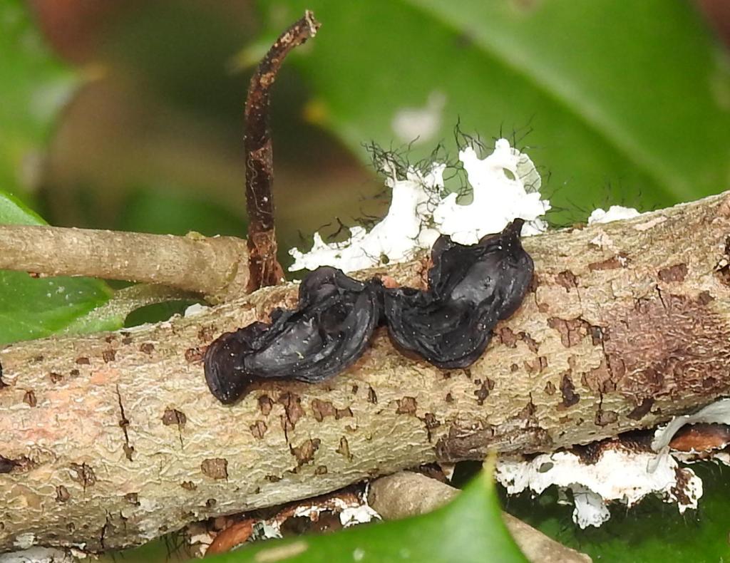 I am always searching trees for interesting lichens and insects. This is amber jelly fungus.