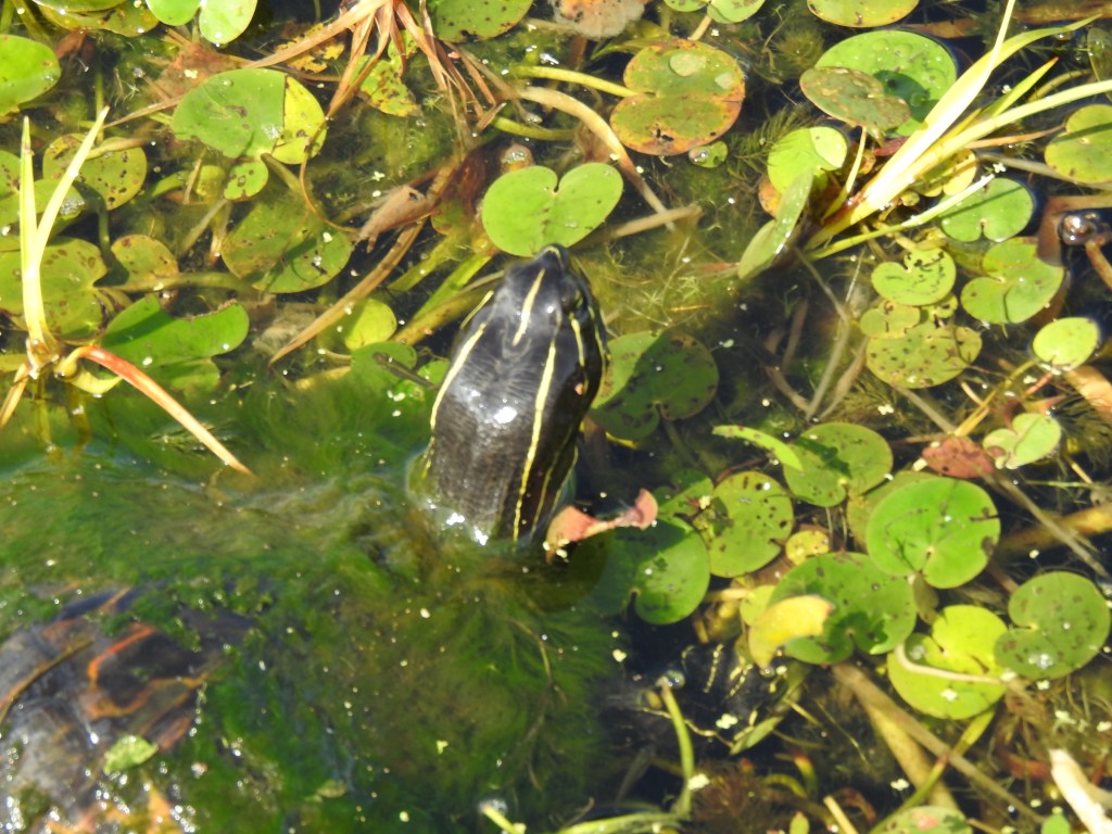 Along the boardwalk there is an interesting assortment of water plants including a lot of water lettuce. Scanning the floating plants resulted in other interesting finds such as dragonflies and turtles, like the Florida red-bellied turtle.
