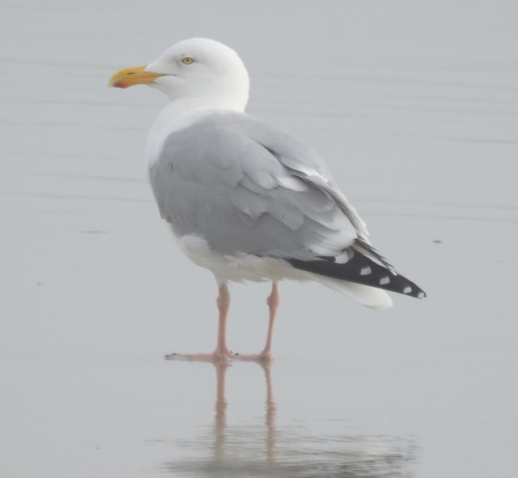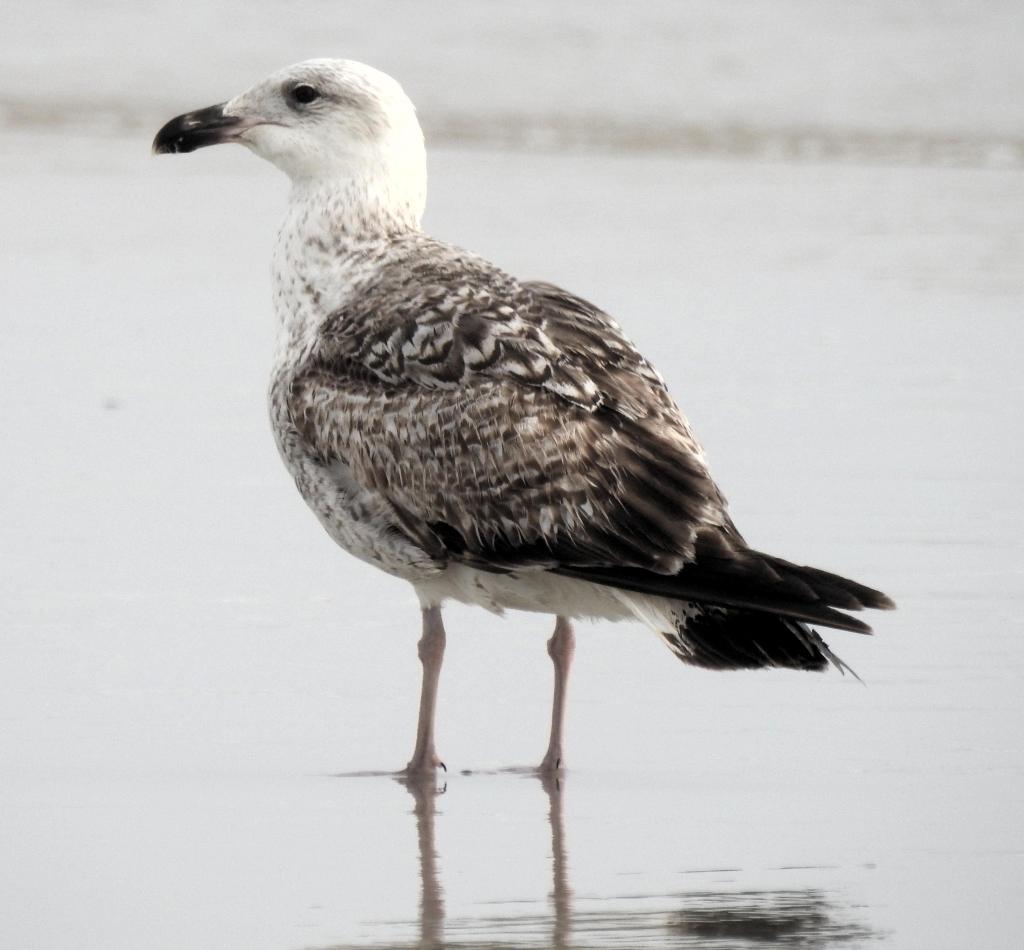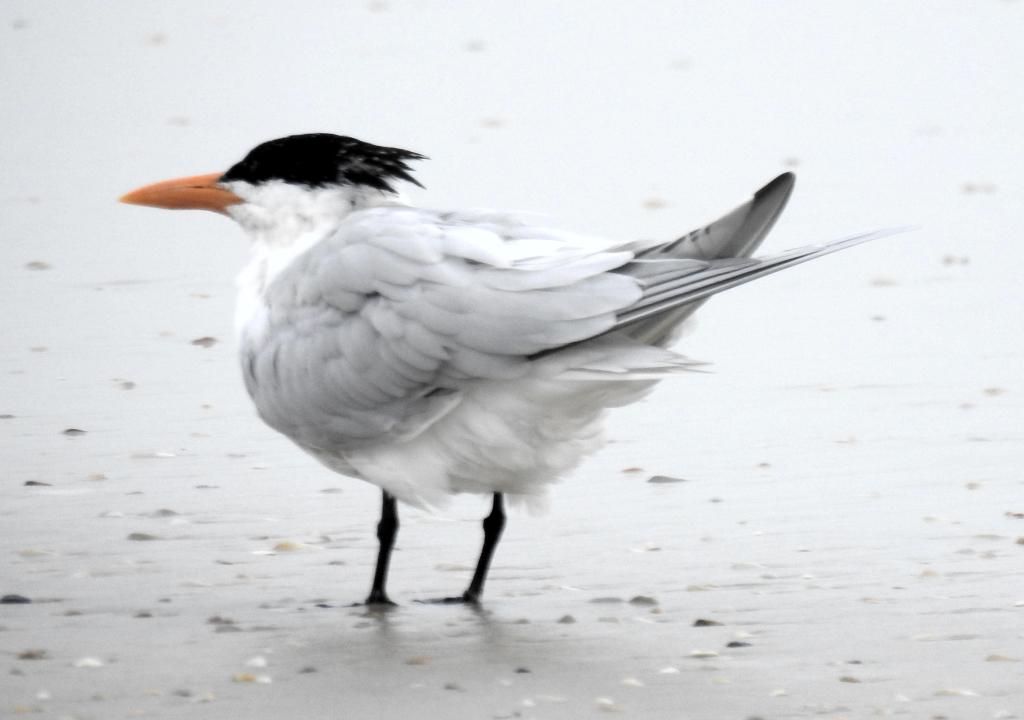 Today we went down and drove the beach here north to the jetty. Since it was early in the morning as well as cool and foggy there were very few people to disturb the birds. I got to see some of my favorite gulls and terns. This is one of the many Sandwich Terns that we saw.