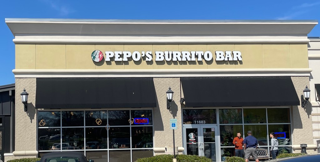 On our final day heading back to Ann Arbor we stopped in Farragut, Tennessee since we needed gas and it was almost noon. We wanted to avoid any big city traffic so this was our choice. Well, we hit the jackpot. Pulling into town I saw a gas station with inexpensive gas and we had to make a turn to get back to it since we missed the drive. We had to get through a small mall and saw Pepo’s Burrito Bar. Obviously this was meant to be our lunch destination. It was a good decision.