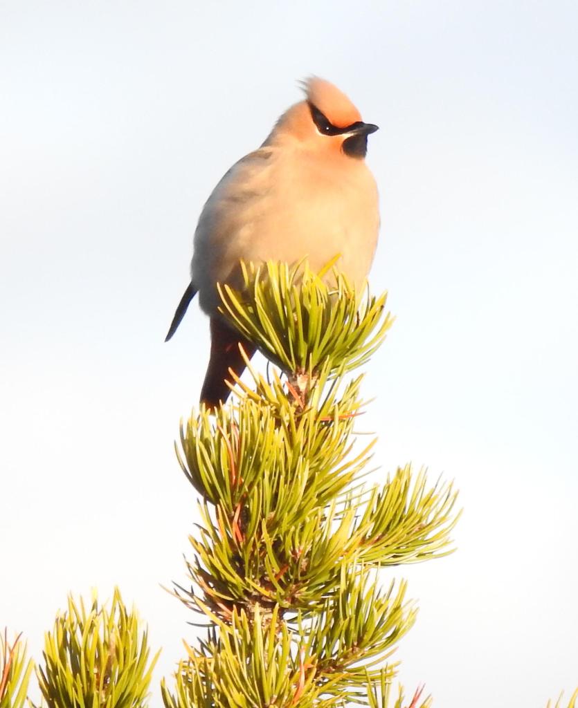 While scanning the sky a flock of Bohemian Waxwings descended on the pines in the drive. As a group of 37 birds they were impressive.