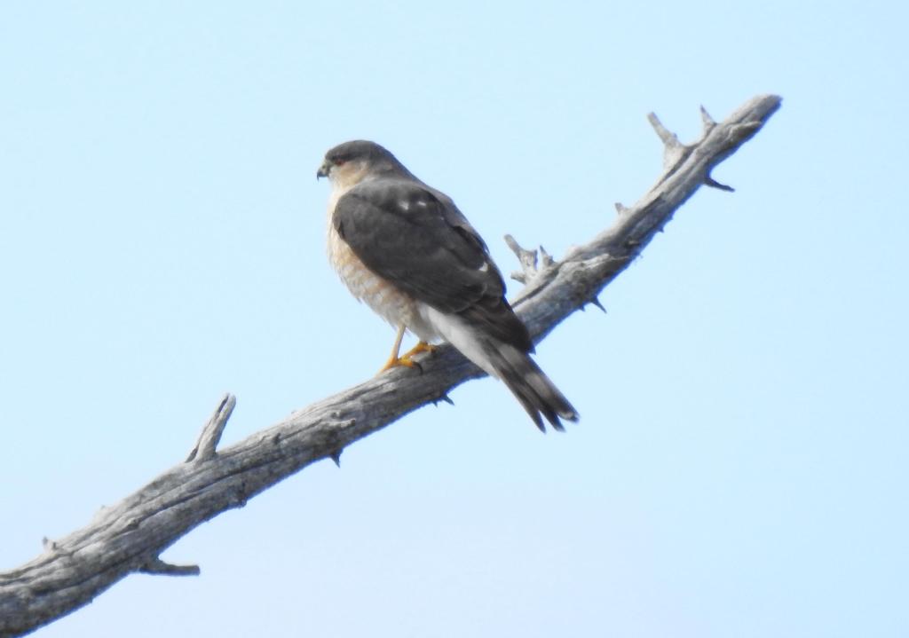 Sharp-shinned Hawks zipped by, mostly too fast to get a photo. This one landed in a nearby tree.