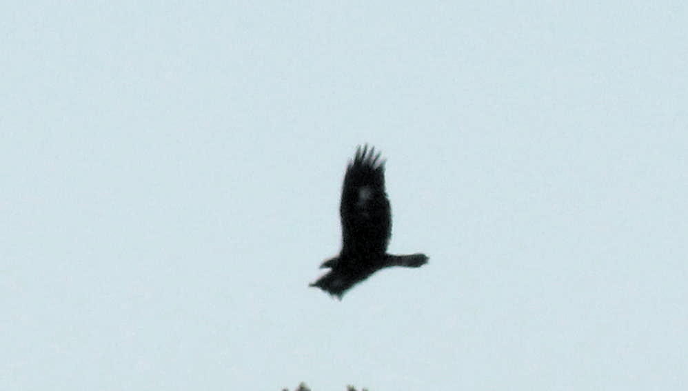 An early Golden Eagle. Just as migration started the rain arrived. For the next five hours it would rain for 15-20 minutes then clear. During each period without rain a few migrants appeared. Then it cleared and the sky dripped hawks on us. There were hundred of Red-tailed Hawks, as well as Rough-legged Hawks, Red-shouldered Hawks, Sharp-shinned Hawks. There were good numbers of both species of eagle and some Northern Harriers. The last to appear were the Turkey Vultures. There was even a Cooper’s Hawk.