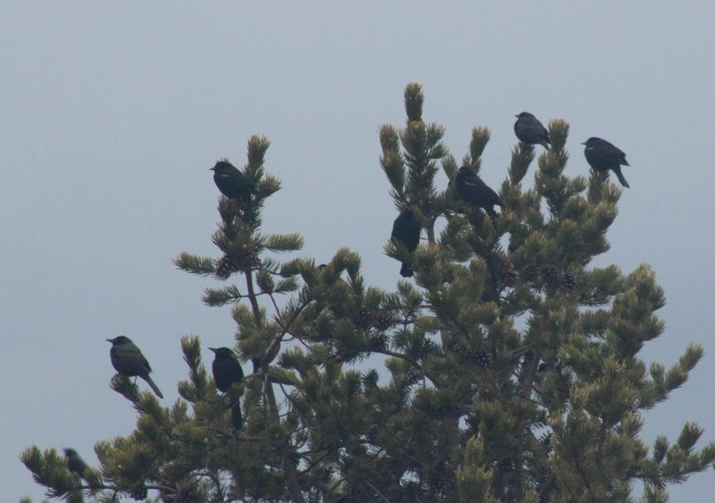 Blackbirds landing in a tree close to us. This flock included Red-winged and Rusty Blackbirds, Brown-headed Cowbirds and Common Grackles. Talk about diverse.