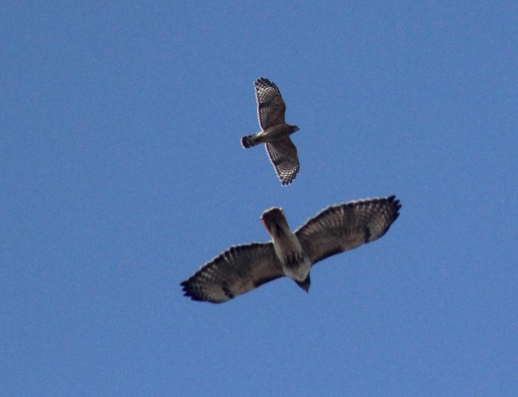 An adult Red-shouldered Hawk that soared well about a Red-tailed Hawk.