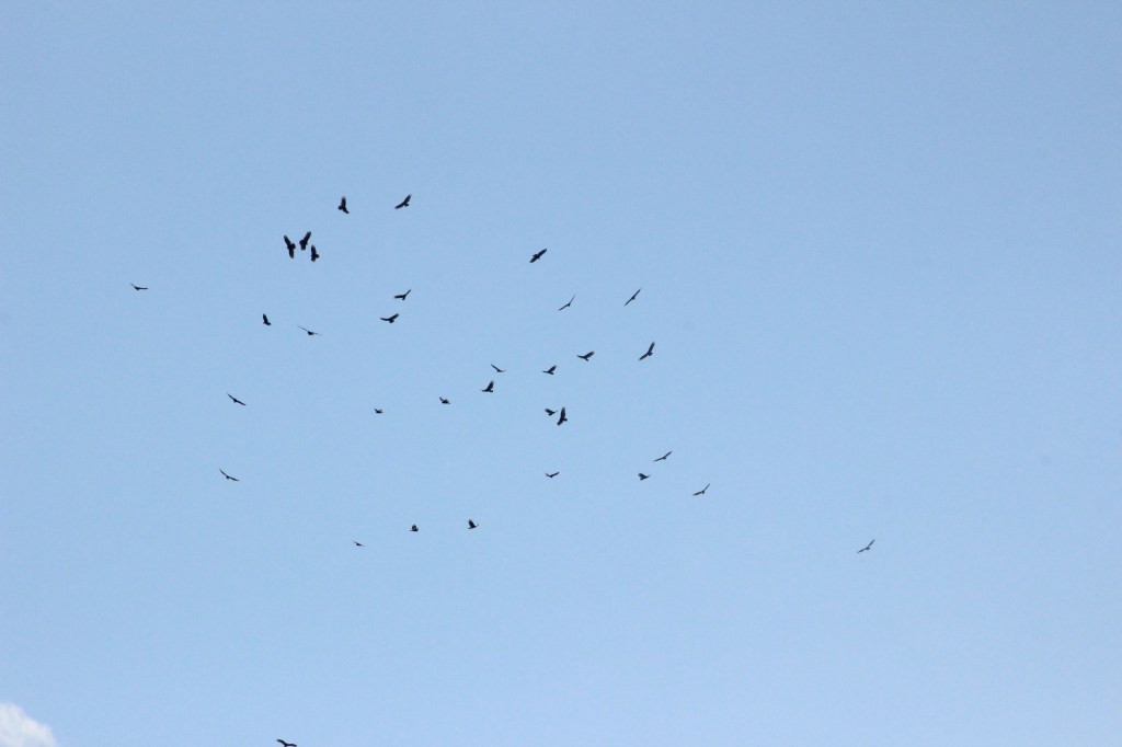 Between periods of cloudiness, rain and blue sky birds moved. These are all Turkey Vultures.