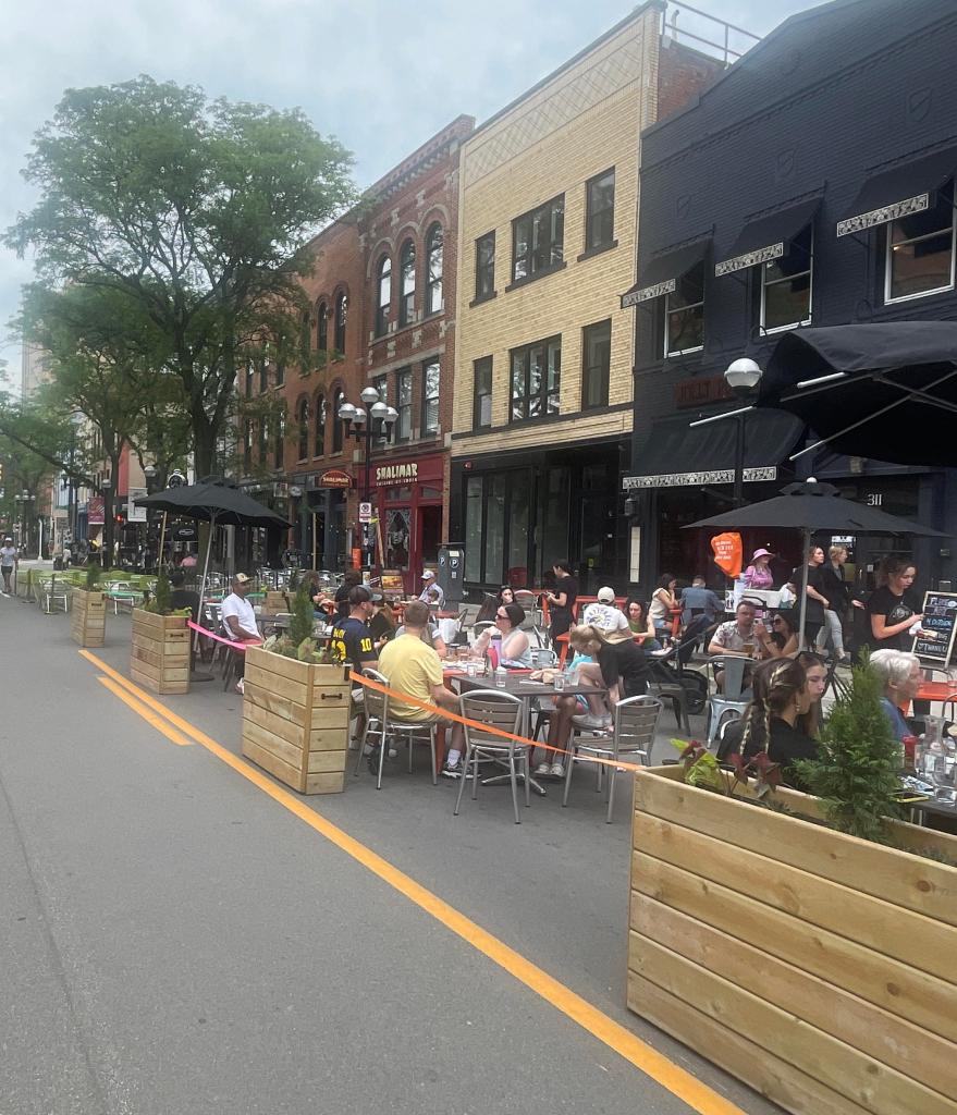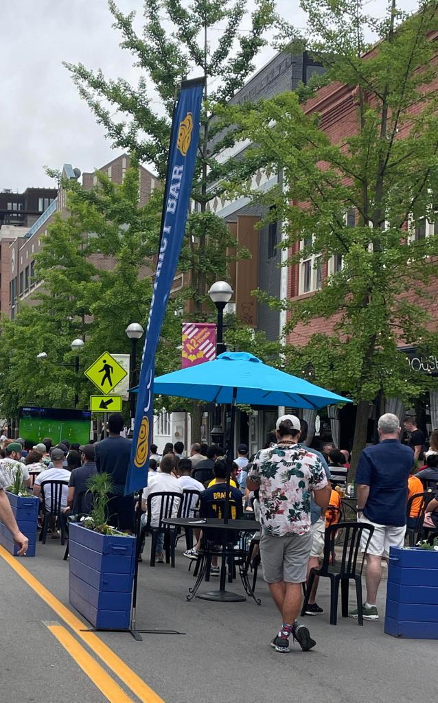 In the early evening we went back downtown. A fun aspect of weekends in Ann Arbor is that many of the streets are closed to car traffic. Outside of Connor O’Neil they had a large screen set up and everybody was watching a soccer game. Whenever we could hear the cheering we new something good happened for the team that everybody was rooting for.
