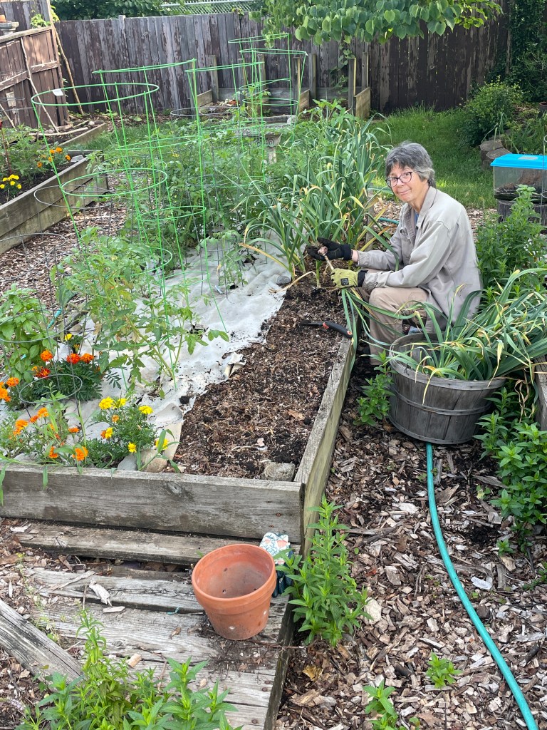 The first big day in the garden since planting is starting the garlic harvest. This row will fill that bushel basket soon.