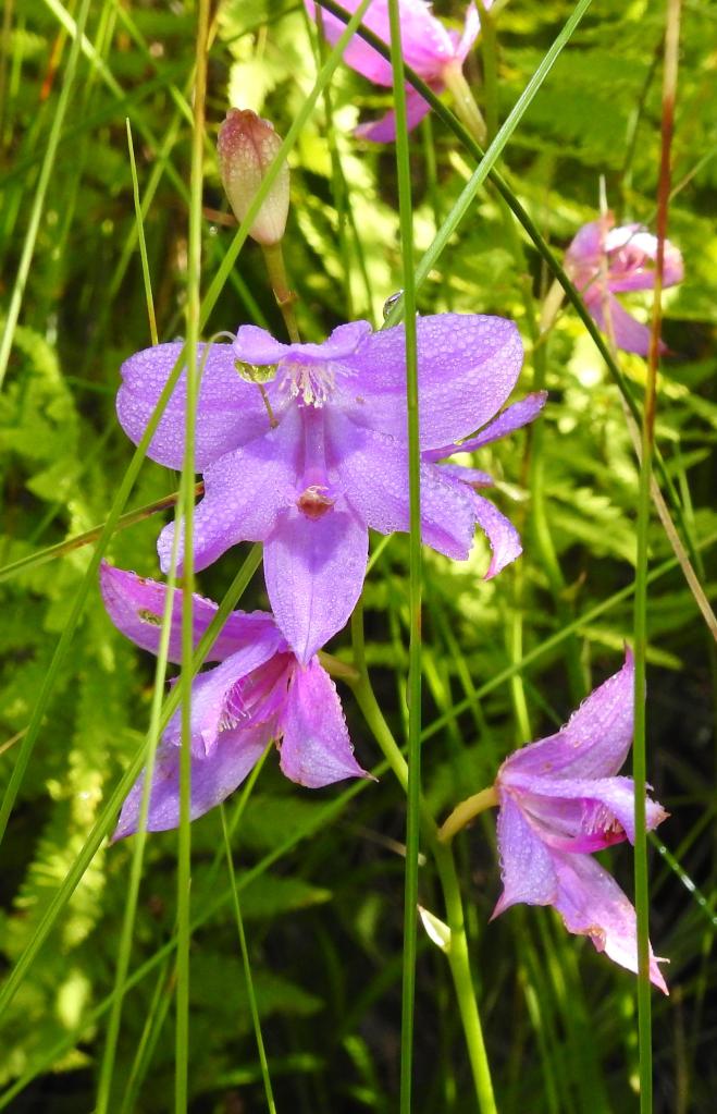 But it was the bog that we were headed to. We had a nice variety of interesting plants including a number of orchids. We had Tuberous grass pink (on the left), Rose pogonia (no photo), Pink lady’s slipper (no longer in flower), Club-spur orchid (on the right) and the target orchid Eastern prairie white fringed orchid (in the center). This year we only found two of this rare orchid.