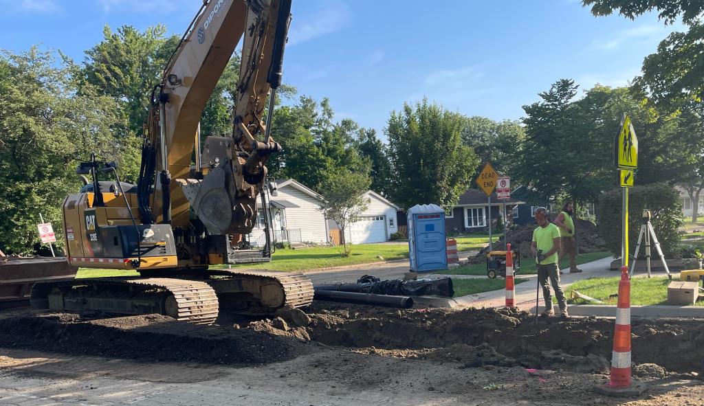 So, there are two water mains to be changed (they are replacing pipes that have been there since 1955). One main is servicing the north side of the street, one the south side. Then they have to replace the storm sewers. It took three months to do the inner crescents, so I expect it to take until at least the end of August, if not September to finish the outer crescents.