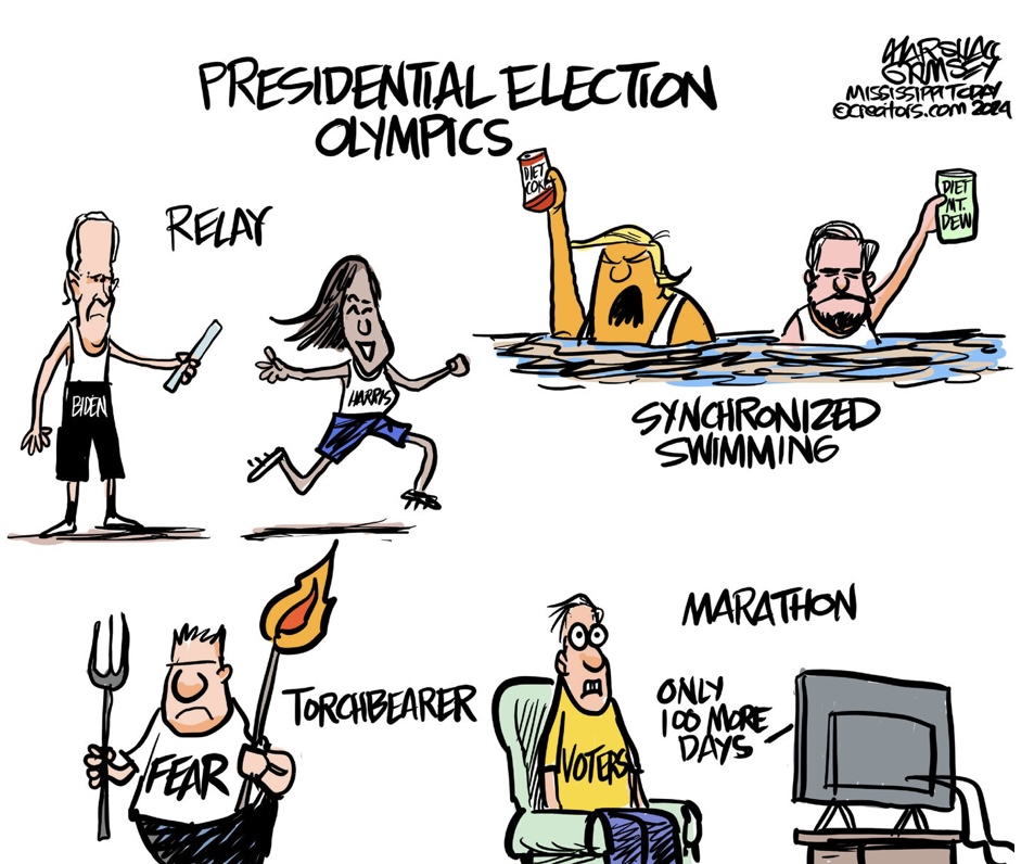 Obviously, I haven’t been watching the Olympics, so I’m sticking to some cartoons. Frankly the first week of the games isn’t very interesting for me. I like the track and field finals especially the decathlon.